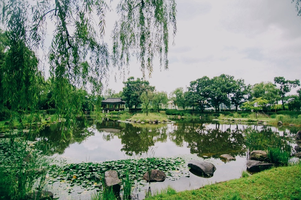 1970년대부터 조성한 면적 17만 3,364m²의 공원에는 곳곳에 능수버들이 있고, 연못가에는 조선시대 화축관의 문루로